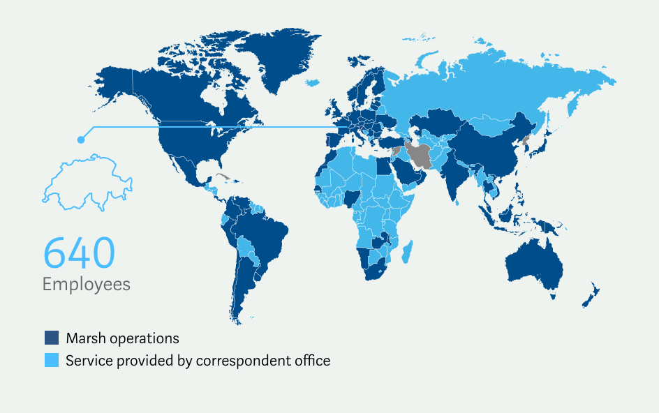 Kessler has represented Marsh Risk in Switzerland since 1998. We use the Marsh Network to support the foreign subsidiaries of more than 200 Swiss multinational clients at local level. Conversely, as the Swiss partner of Marsh we support approximately 800 subsidiaries of foreign companies in Switzerland.